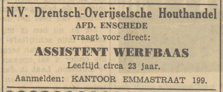 'Drentsch-Overijselsche Houth. N.V. Emmastraat 199.