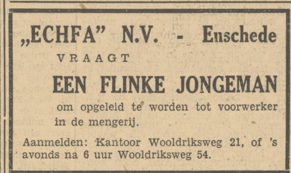 Echfa, N.V. v.h. Enschedesche Chemotechn. Handelsonder. En Fabr. Kant., Wooldriksweg 21,