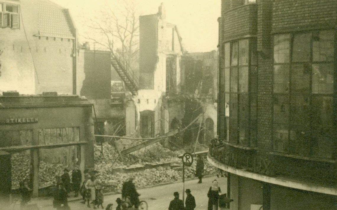 Hieronder een foto van de situatie Langestraat hoek Haverstraat na het bombardement. De panden van het Blijdensteinhuis, C en A pand en ook het pand van kledingzaak Oostvogel zijn dus daarbij verwoest. Op die hoek kwam later het nieuwe pand van Oostvogel. Hieronder nog wat foto's van het oude pand.