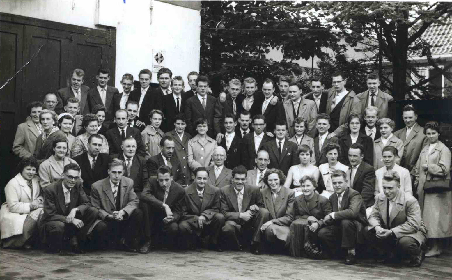 Oldenzaalsestraat Personeel Electro Beckman Böhm en Nieuwenhuijs. Foto 1956.