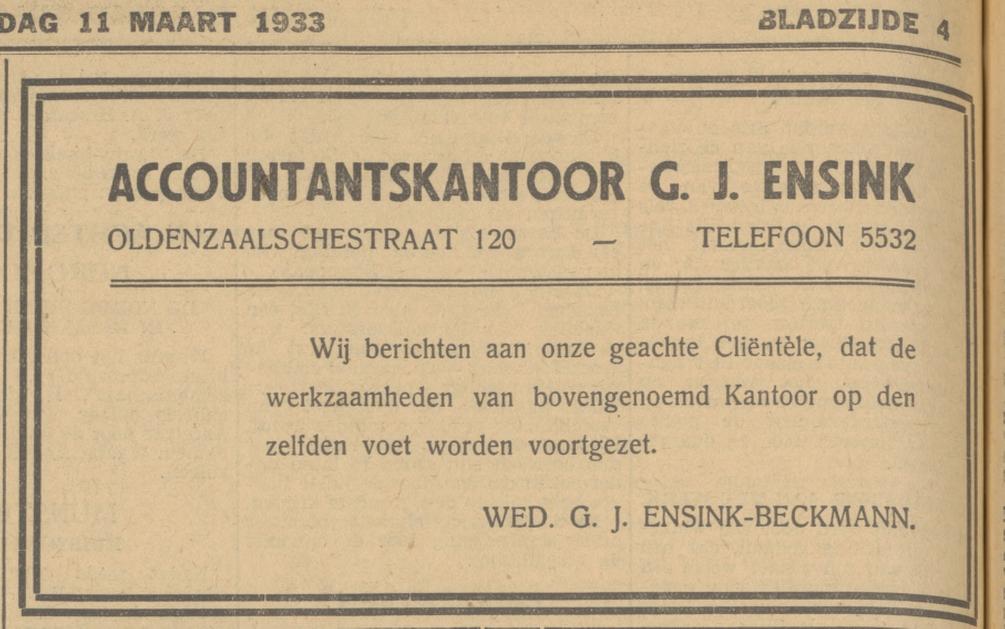 Ensink, Fa. Wed. C.H. Kol.w., Veenstraat 129,