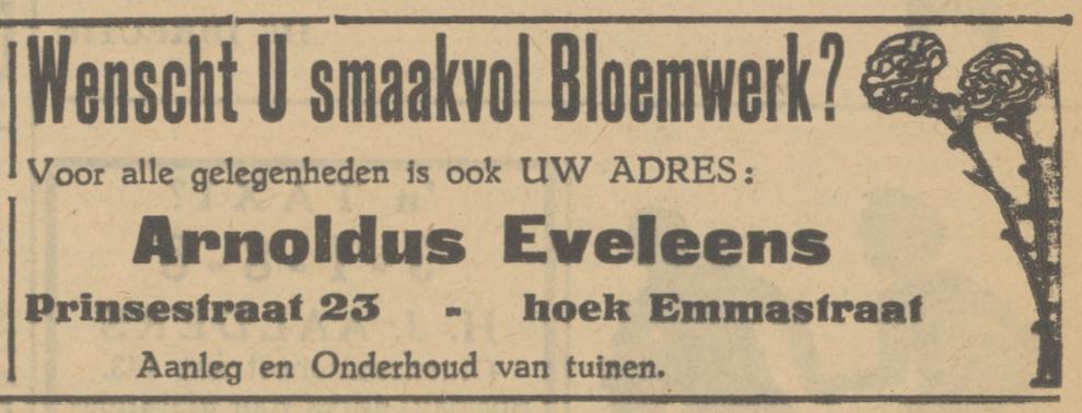 Eveleens, A. Bloemenmag., aanl. en ond. v. tuinen, Prinsestraat 23