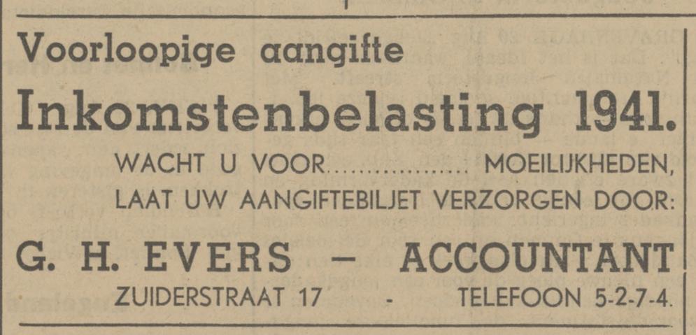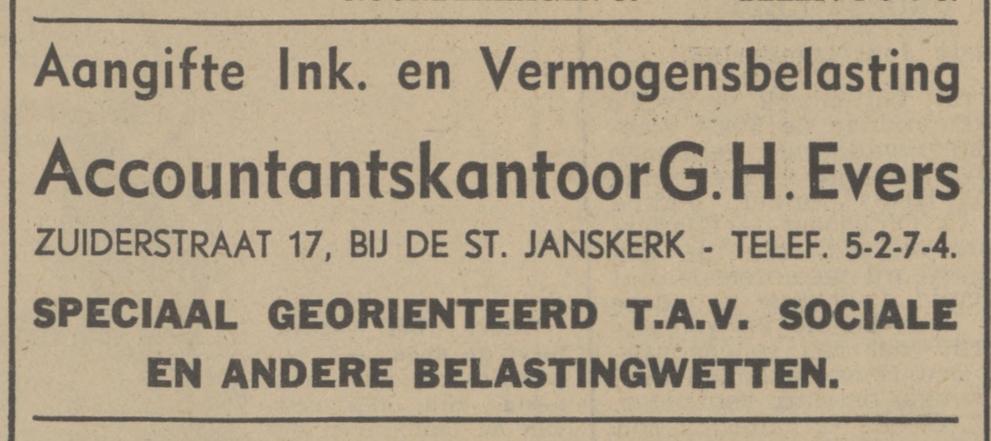 Evers, G.H. Kant. v. Account. en belast.z., Zuiderstraat 17