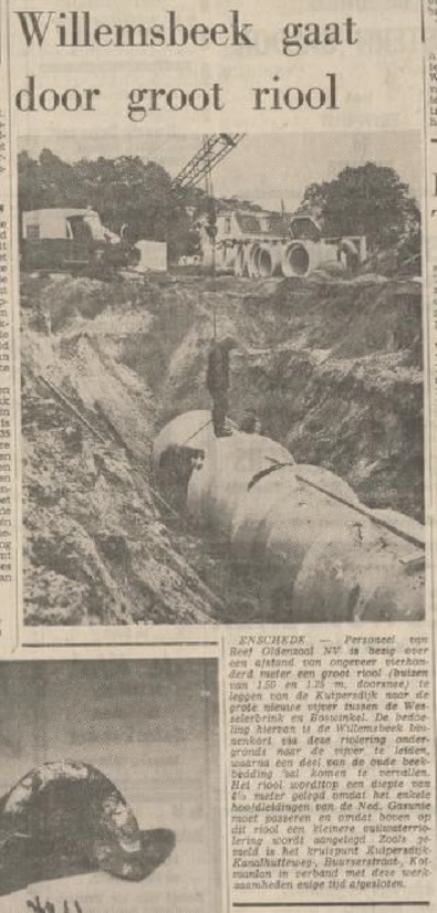 De Willemsbeek loopt dus nu via rioleringsbuizen naar de vijvers bij de rijksweg A35 tussen Boswinkel en Brokheurne. zie onderstaande krantenberichten uit Tubantia van 30-8-1969 en 11-9-1970.