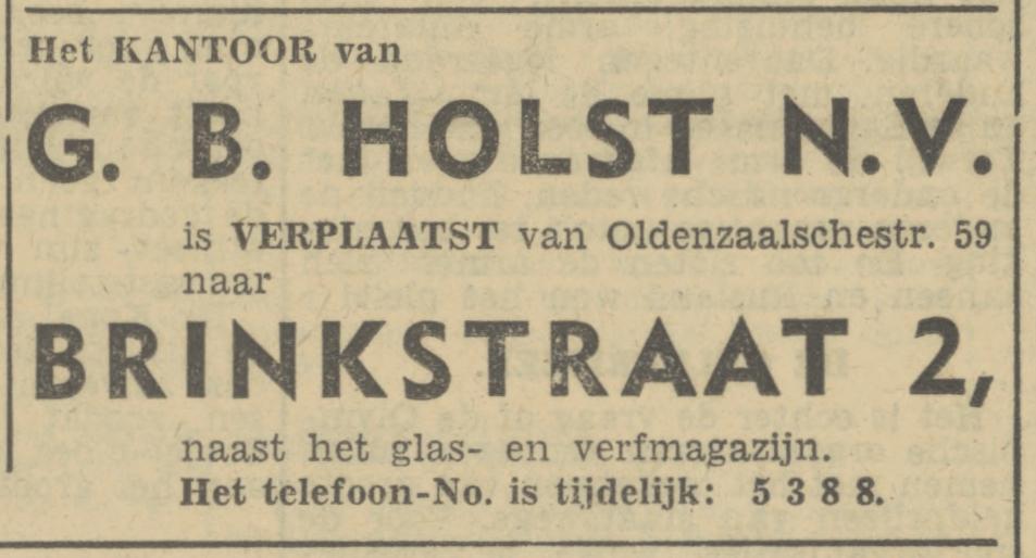 Geld. Over. Glasverz. Mij. Dir. G.B. Holst N.V., Brinkstraat 2