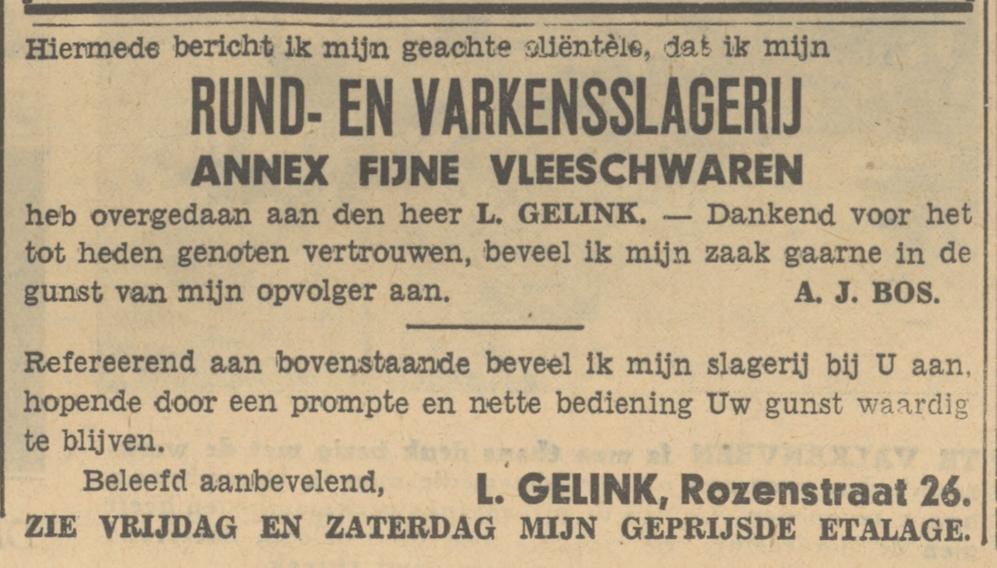 Gelink, L. Slagerij en comest. Rozenstraat 26