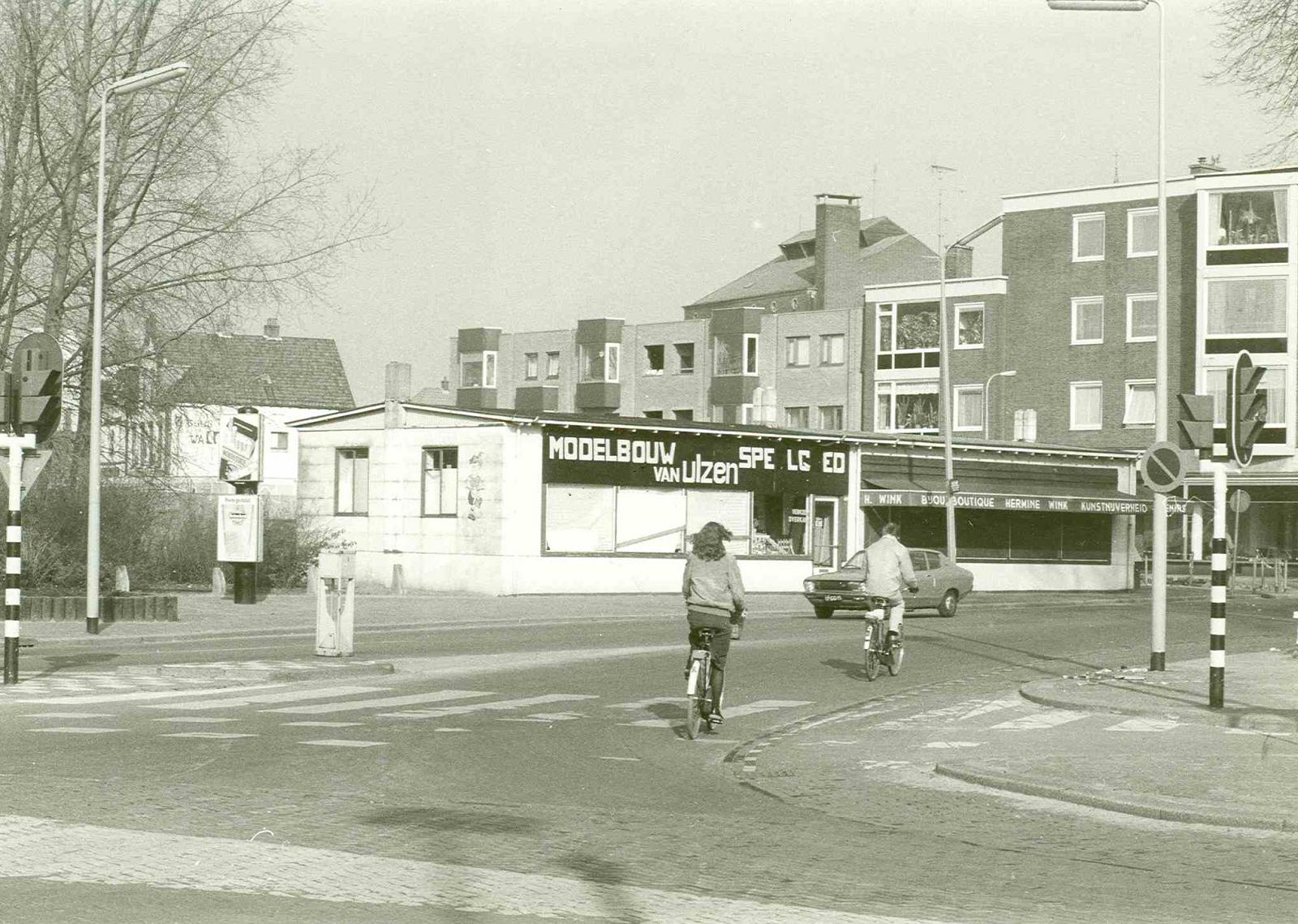 Nee, niet de Beltstraat in, (dat is net vóór de stoplichten, bij de verkeersheuvel), maar pas bij de verkeerslichten. Dus we gingen voor die lage noodwinkels langs, richting het Van Loenshoef. Die fabriek van Jannink was toen al gesloopt. Je keek zo op de Zuiderhagen en Pijpenstraat. Een ongelijke betonnen vloer was toen een parkeerplaats geworden.