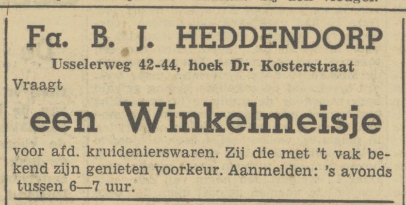 Heddendorp, Fa. B.J. Kruiden.w., exp. eieren, manuf., enz., Usselerweg hoek Dr. Kosterstraat