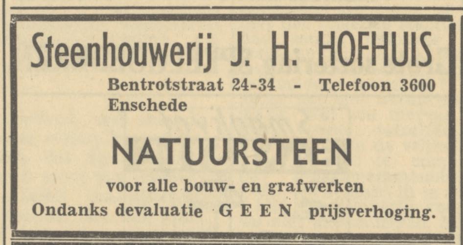Hofhuis, Steenhouw. J.H. Marmerw., grafmon. enz. Bentrotstraat 34.
