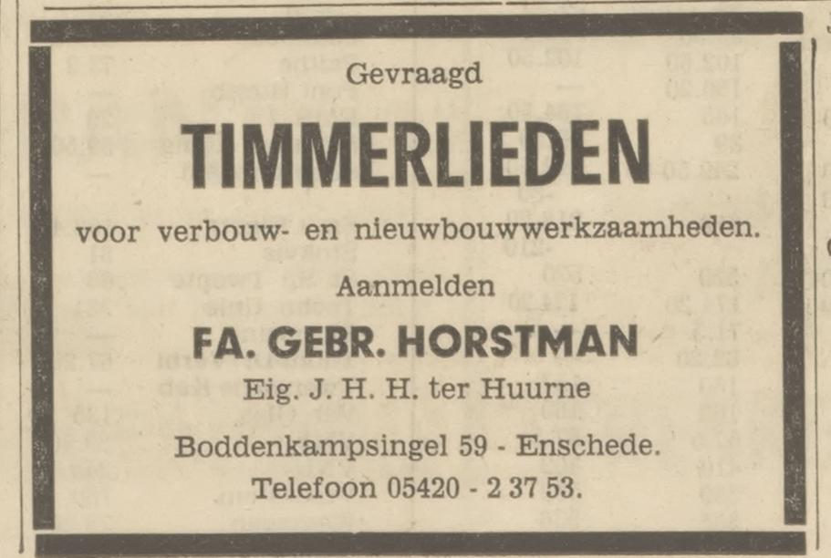 Horstman, Fa. Gebr. Aann., timm. en metsel., Boddenkampsingel 59