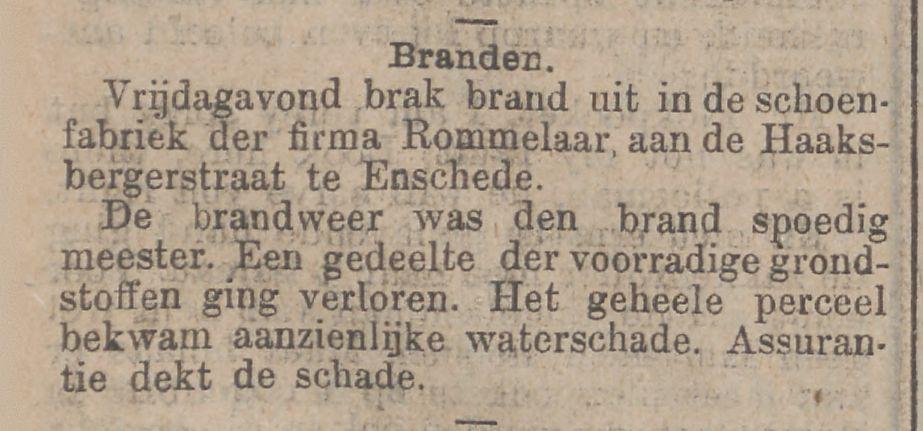 In de 2e helft van de jaren 50 is er bij Rommelaar aan de Haaksbergerstraat ook een grote brand geweest. Één van mijn toenmalige klasgenoten woonde in één van de bovenwoningen in de winkelrij aan de straat daar en werden allemaal geëvacueerd.