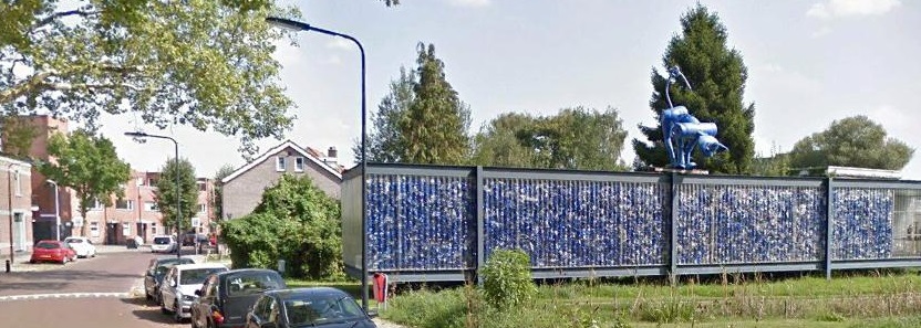 Dat breiwerk is van het voormalige PET-paviljoen aan de Blekerstraat.