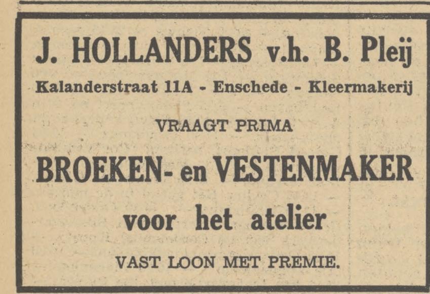 4064 Pley, B. v.h. J. Hollanders Kleermakerij, Kalanderstraat 11a