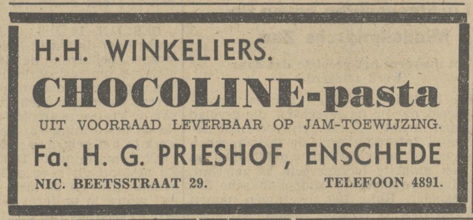 4891 Prieshof, Fa. H.G. Agent levensmiddelen, genotmidd., Nic. Beetsstraat 29