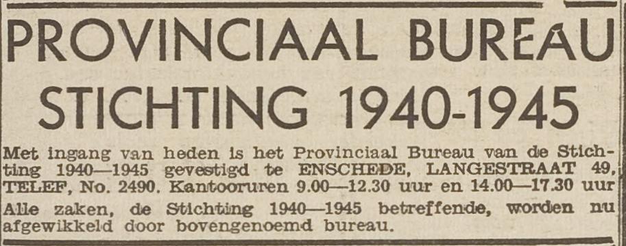 2490 Provinciaal Bureau Stichting 1940-’45 Langestraat 49