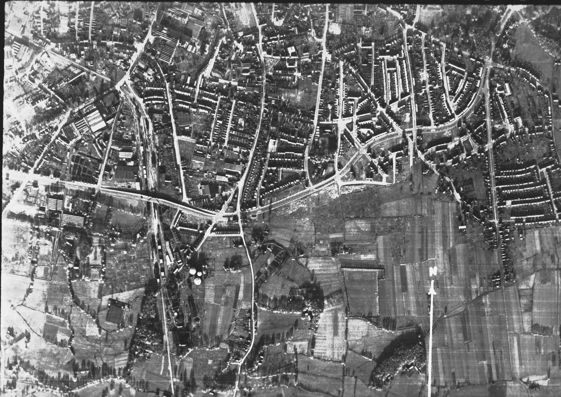 Dit is een luchtopname van Enschede zuid (Station) gemaakt in 1944.