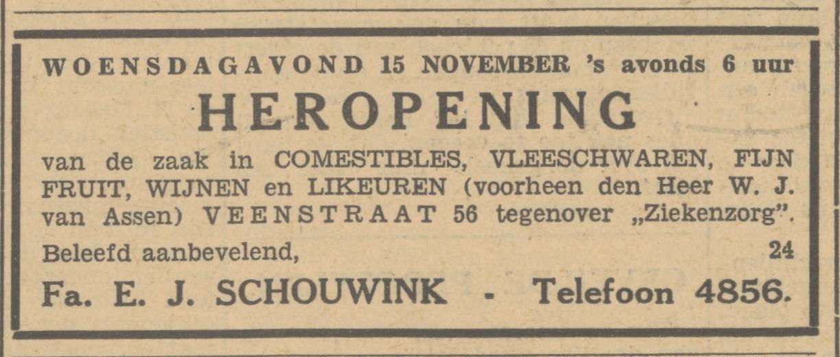 4856 Schouwink, E.J. Fruit en comestibles, poelier, Veenstraat 56