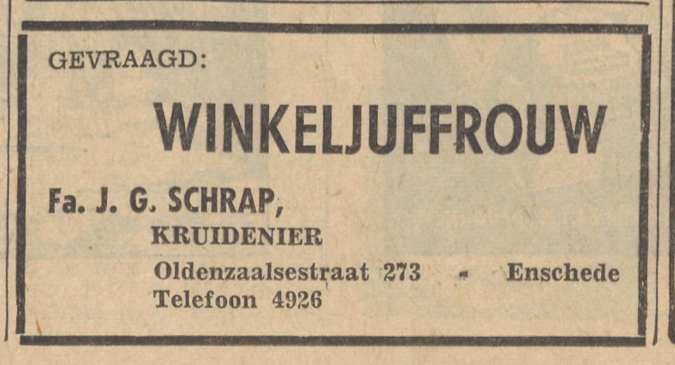 4926 Schrap, J.G. Kruidenierwaren, Oldenzaalsestraat 273, Lonneker