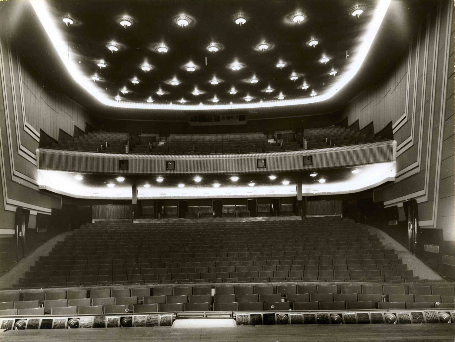 De grote zaal is er, voor zover ik weet, in twee uitvoeringen geweest; het origineel uit de jaren vijftig en de versie van na de verbouwing in 1983 (met die getrapte zijbalkonnetjes).