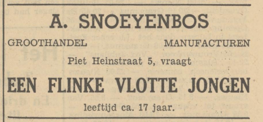 Snoeyenbos, A. Groothandel in manufact., Piet Heinstraat 5