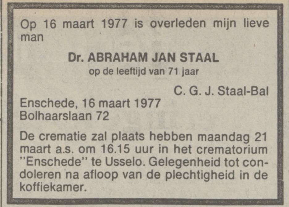 5437 Staal, Dr. A.J. Leer. Gem. H.B.S. A. en Lyceum, Bolhaarslaan 72