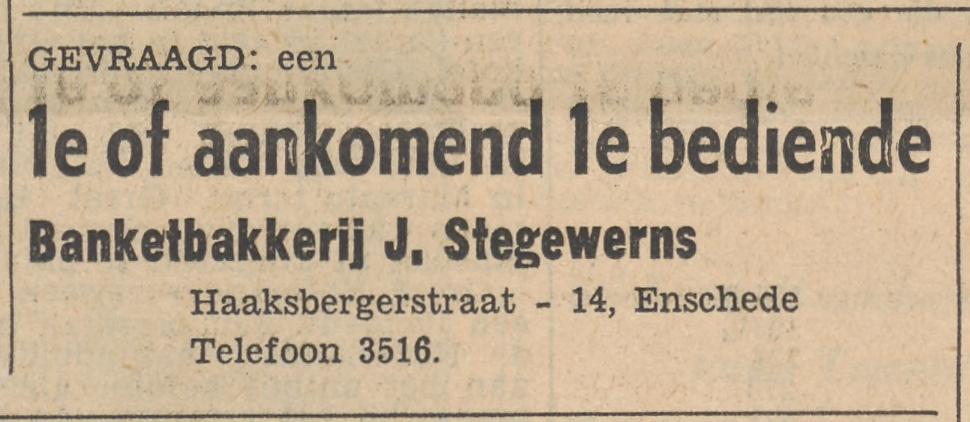3516 Stegewerns, J. Banketbakk. Haaksbergerstraat 14