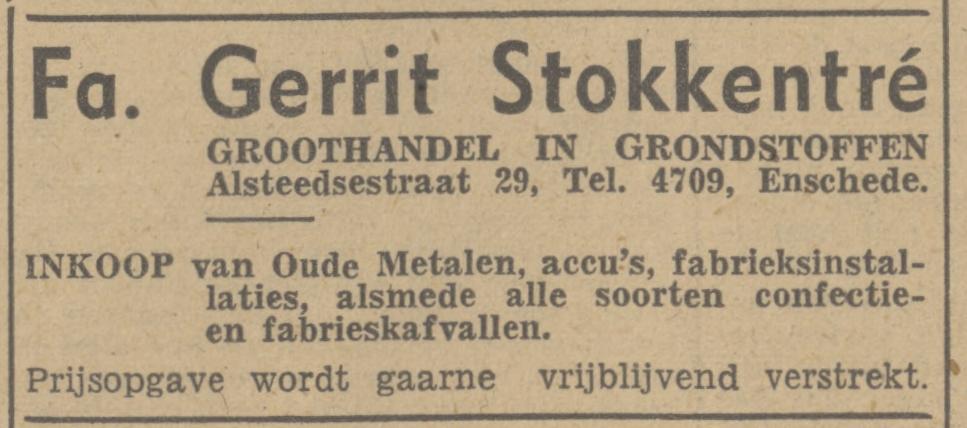 4709 Stokkentré, G. H.machine, opkoper metaal, afval, Alsteedsestraat 29