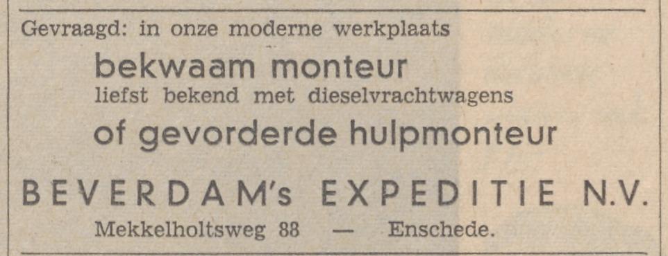 Mekkelholtsweg 88 Beverdam's Expeditie N.V. advertentie Tubantia 3-11-1965