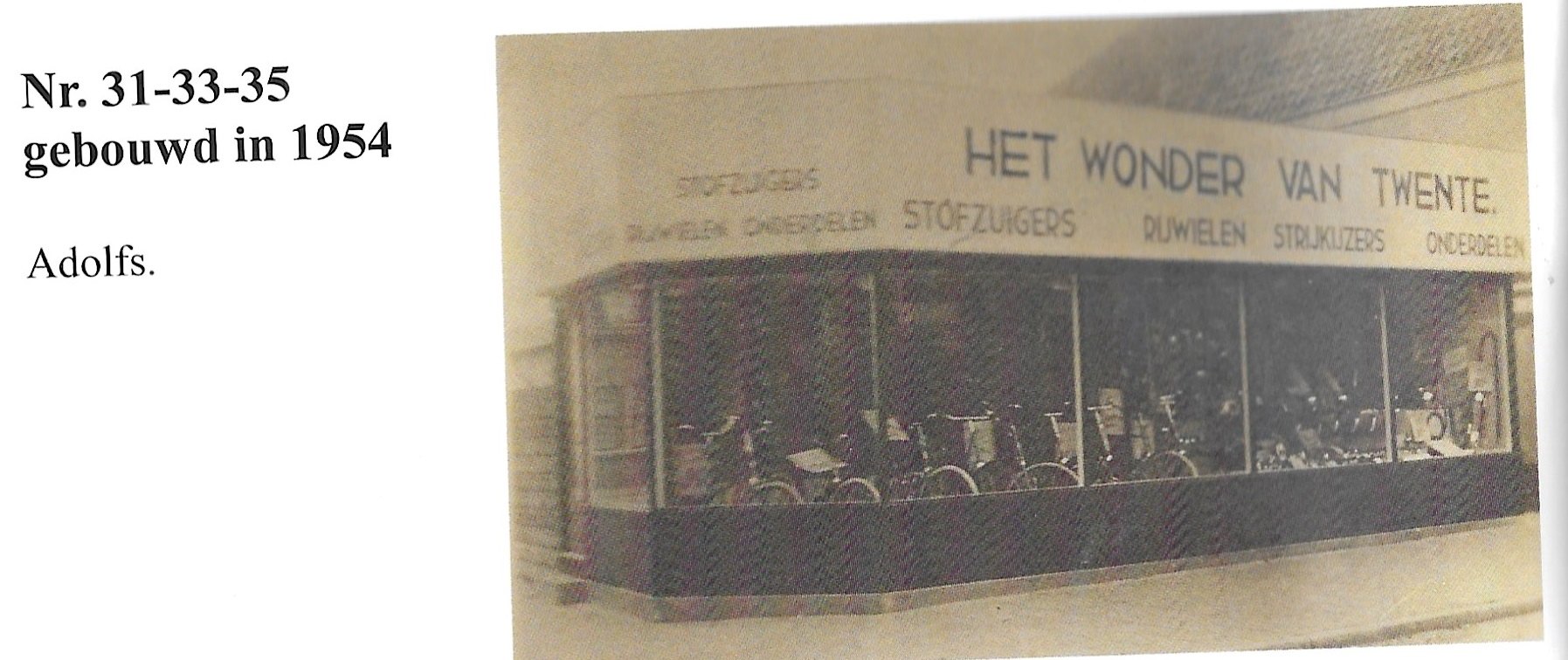 De winkels van Adolfs aan de Floresstraat 18-20, Lipperkerkstraat 31-33 en Haverstraatpassage 64 zijn in 1969 verplaatst naar de Boulevard 1945-136 en 140 volgens onderstaande advertentie uit de Tubantia van 18-9-1968.