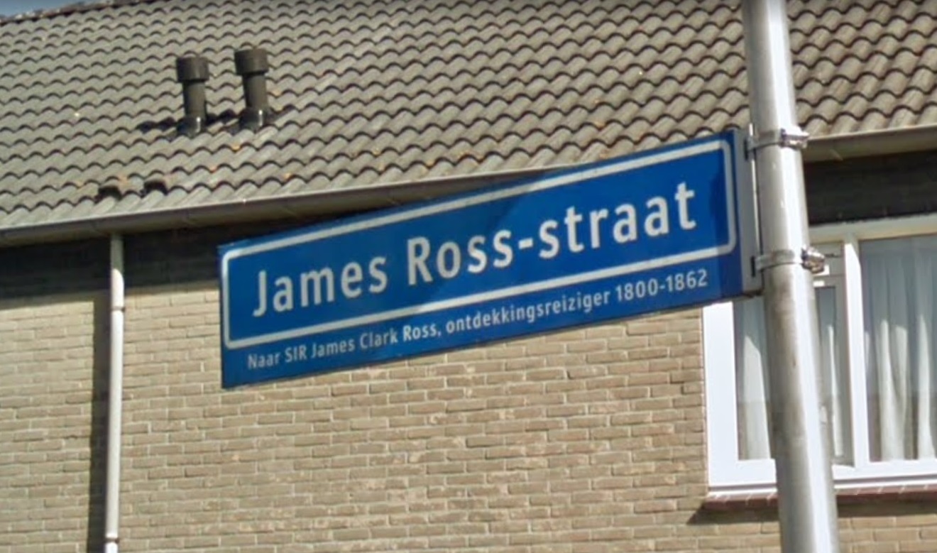 Naar Sir James Clarke Ross, Engels poolreiziger, geboren 15 april 1800 te Londen, overleden 3 april 1862 te Aylesbury. Maakte in 1829 een 4 jaar durende expeditie naar de poolstreken van Noord Amerika, waar hij de magnetische Noordpool ontdekte en stelde bij een expeditie naar de Zuidpool het bestaan van een antarctisch continent vast (15 oktober 1962). bron: