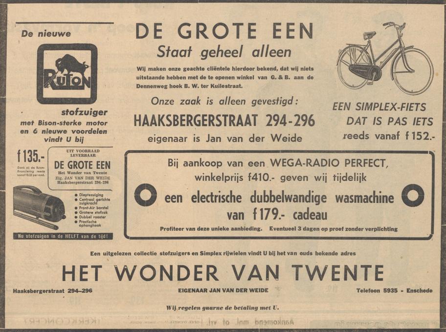 4010 Wonder van Twente Handel in rijwielen stofzuigers electr. enz. Lipperkerkstraat 24