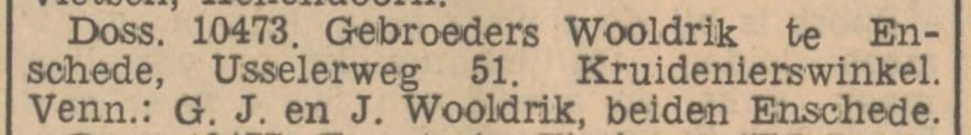 E.J. Wooldrik was medefirmant van de Firma W.R. Laponder ook gevestigd aan de Oldenzaalsestraat 82 met telef.nr. 3832