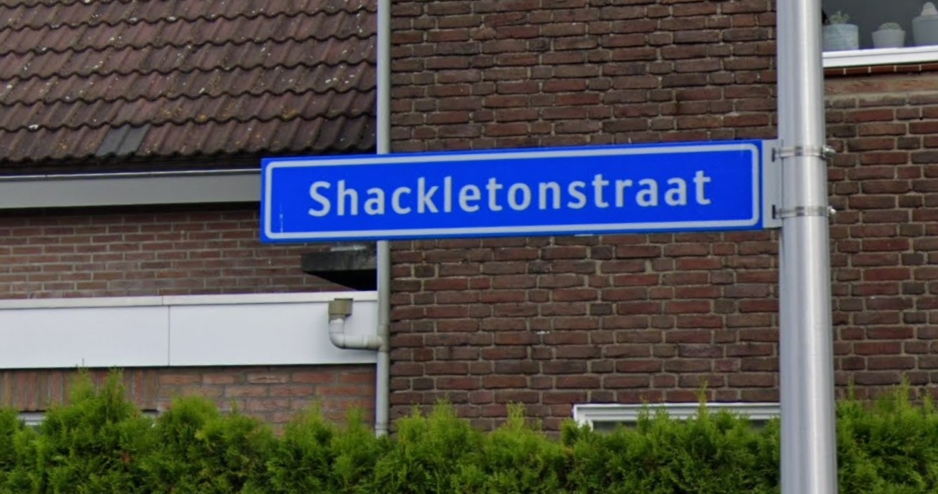 Naar Sir Ernest Henry Shackleton, Engels poolreiziger, geboren 5 februari 1874 te Kilkee (Ierland) overleden 5 januari 1922 Z. Georgie. Leidde in 1908 van Nieuw-Zeeland een expeditie naar de Zuidpool, die verrassende resultaten opleverde (15 oktober 1962). bron: https://straatnamen.enschede.nl/straten/00906/?char=S