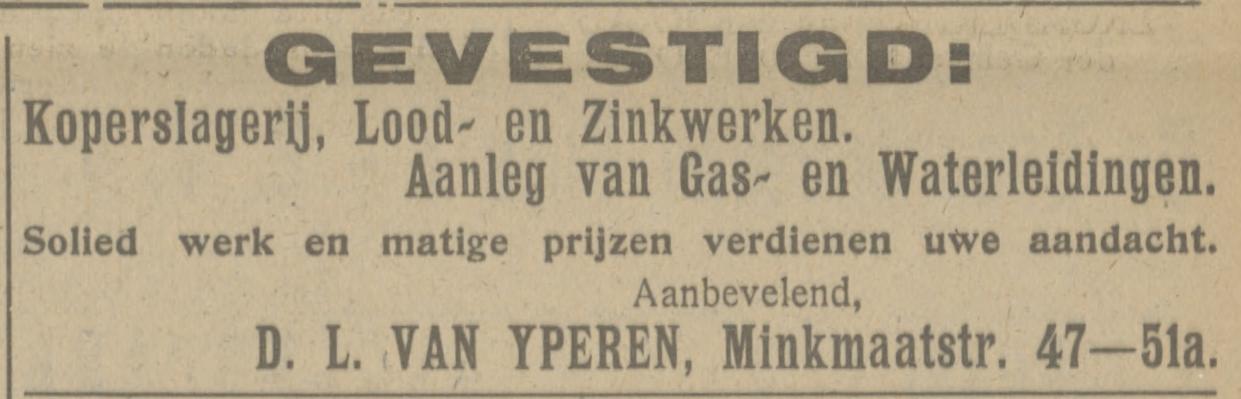 4074 Yperen, D.L.v. Koperslager, loodgieter enz. Minkmaatstraat 47