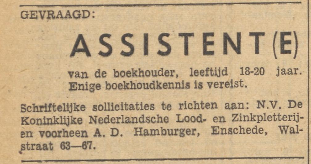 2477 Zinkpletterijen voorheen A.D. Hamburger, NV, de Kon.Ned. Lood- en. Walstraat 63