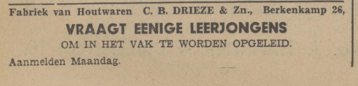 Berkenkamp 26 C.B. Drieze & Zn. Fabriek van Houtwaren advertentie Tubantia 17-5-1941.jpg
