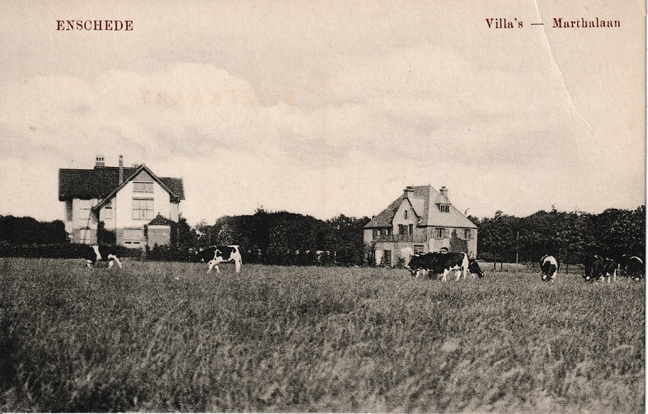 De villa rechts lijkt mij Marthalaan 31 vanaf Gronausestraat en schuin tegenover links Marthalaan 14, het vroegere huis van M. ter Kuile,