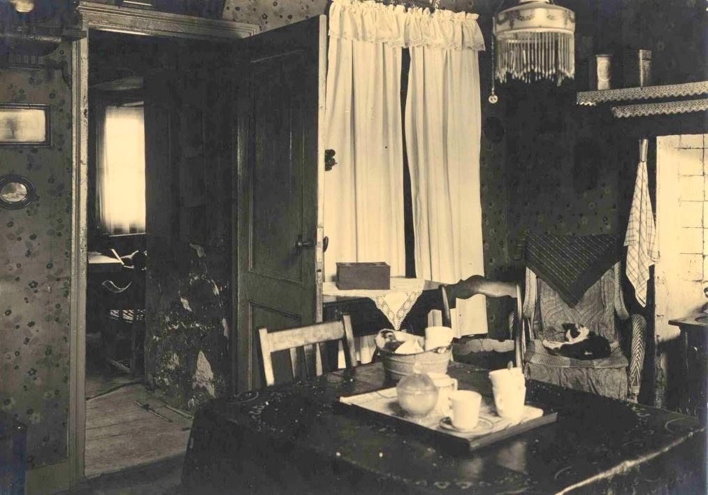 Het was vrogger in Eansche bie de gewone leu nich zo kaant in hoes as vedaag. Het was vroeger in Enschede bij de gewone man niet zo deftig / niet zo rijk bemeubeld, in huis als vandaag de dag.