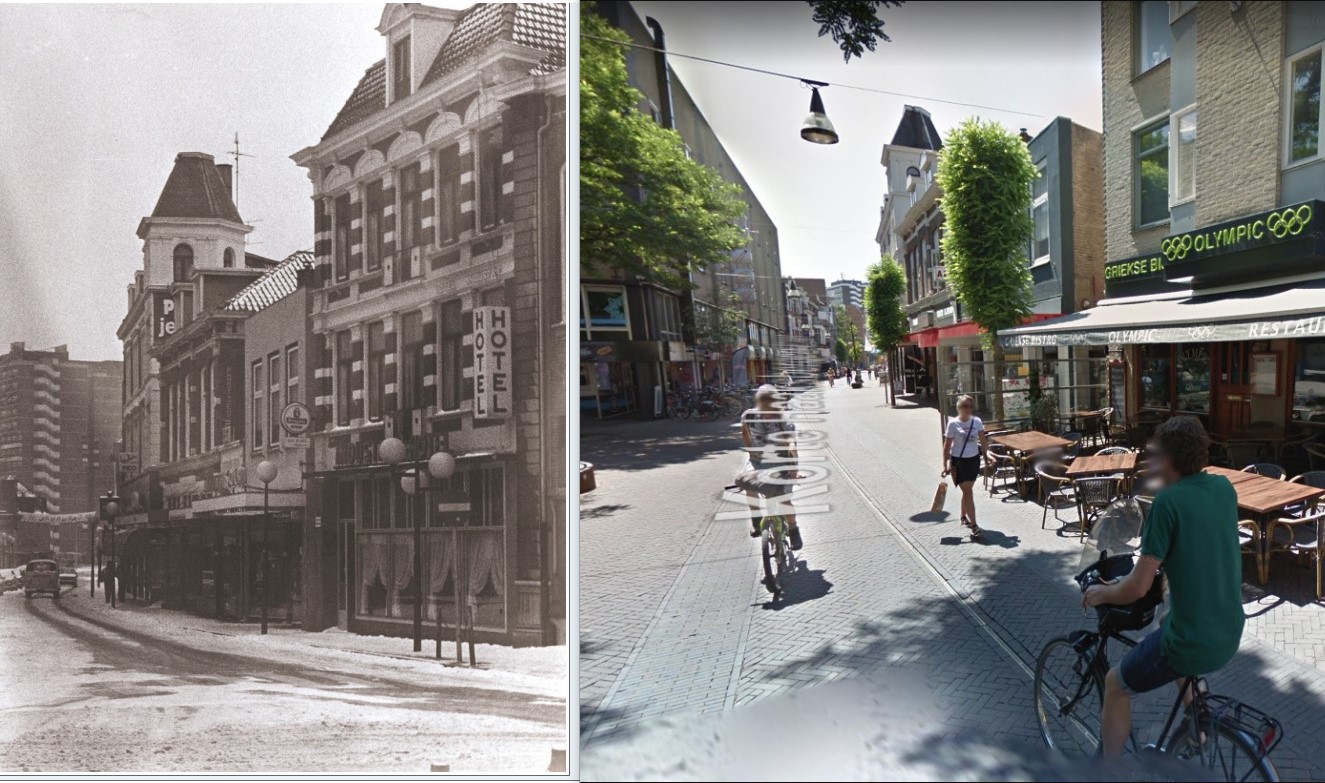 Korte Haaksbergerstraat in 1965 en in  juni 2019.jpg