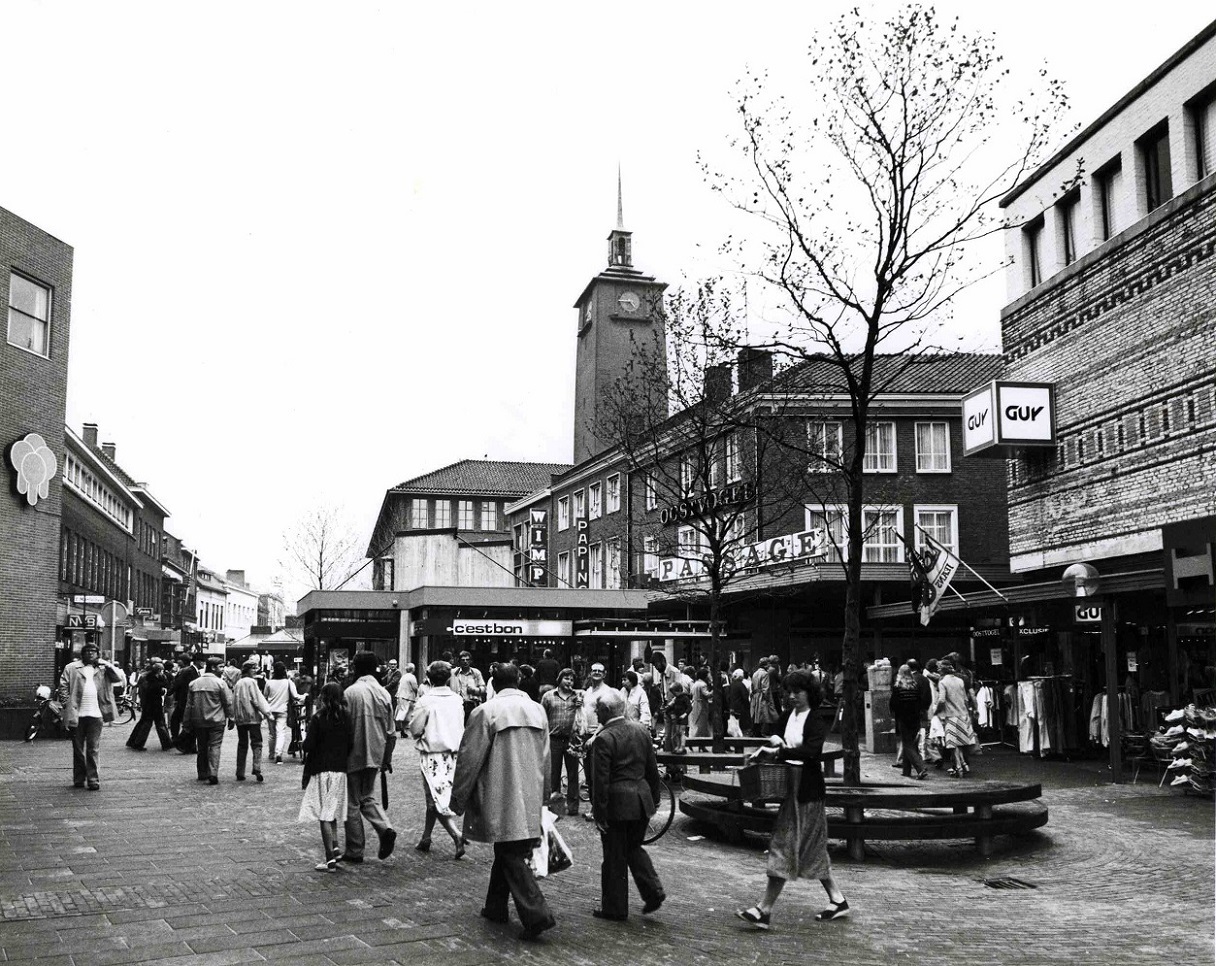 Langestraat 22 Herinrichting straat, gezien in de richting van Van Loenshof, met winkels Moustache, 't Mantelhuis, Sporthuis Twente, Paping en Wimpy 14-5-1979.jpeg (83.3 KiB) 5535 keer bekeken