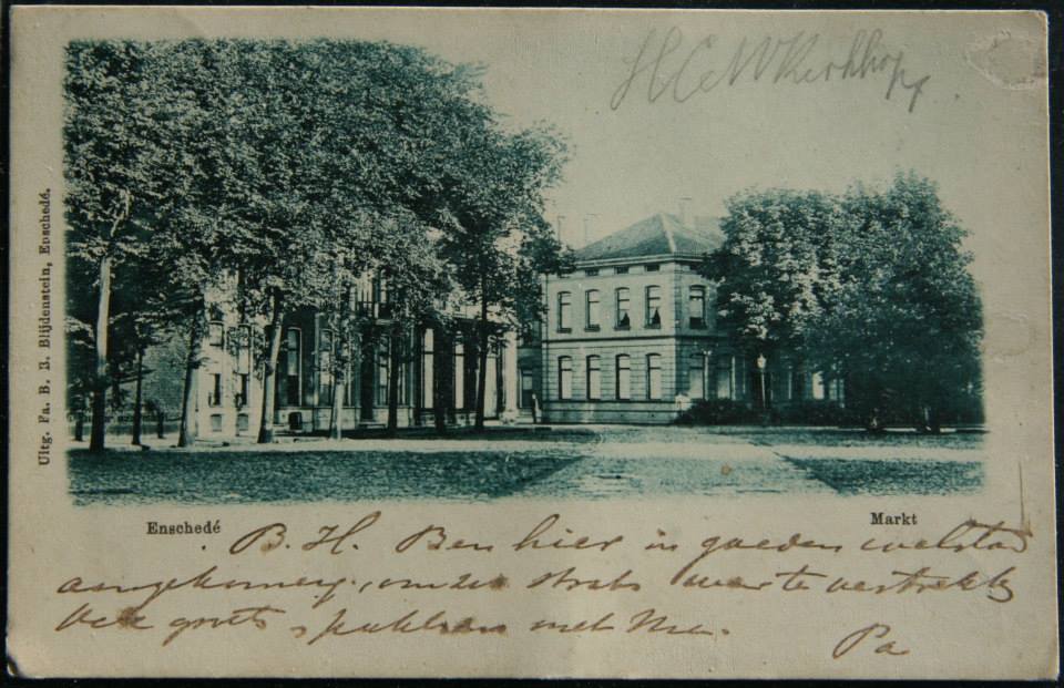 Ik kan het ook niet lezen Hierbij nog een briefkaart van de villa Cromhoff aan de Markt 8 met tekst. Deze is misschien wel te lezen?