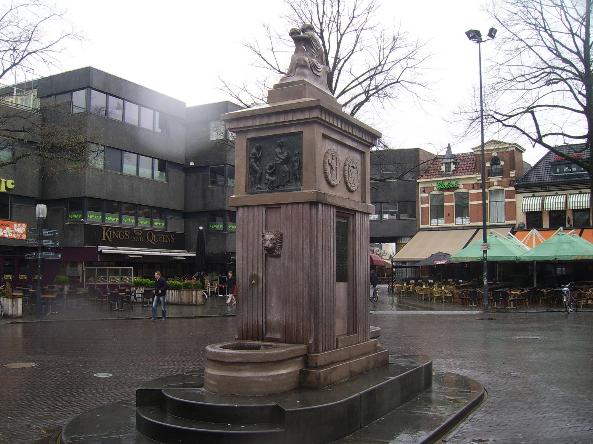 Oude Markt 9 cafe Kings and Queens en brandmonument.JPG