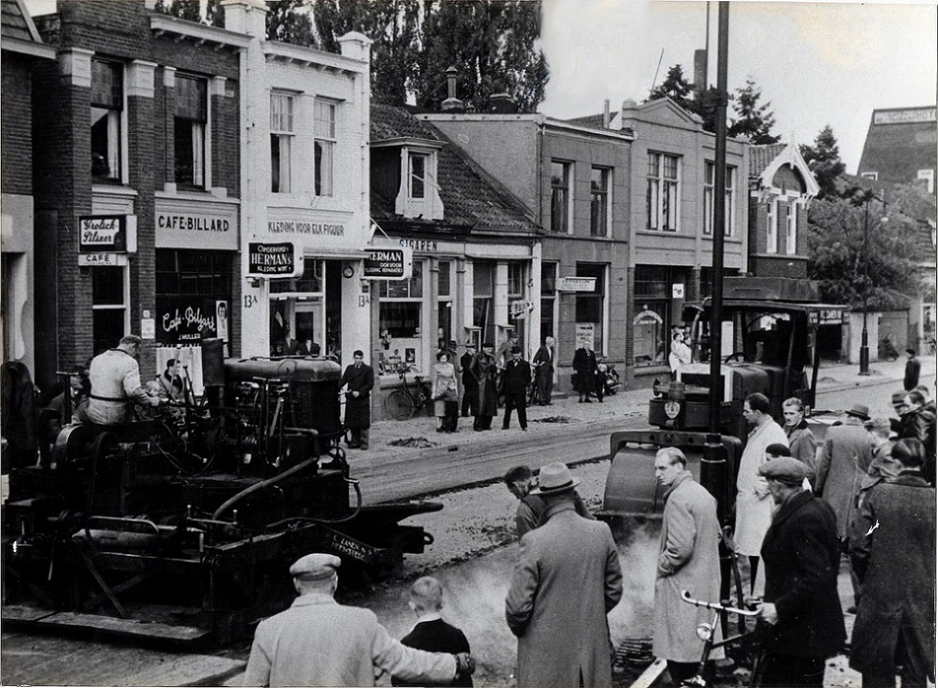 Wat een dankbaar werk voor de 'asfalteerders' van toen, zoveel publiek. Leuk! Nu kijkt niemand meer met belangstelling. Alleen bij een ongeluk, want dat moet worden vastgelegd.