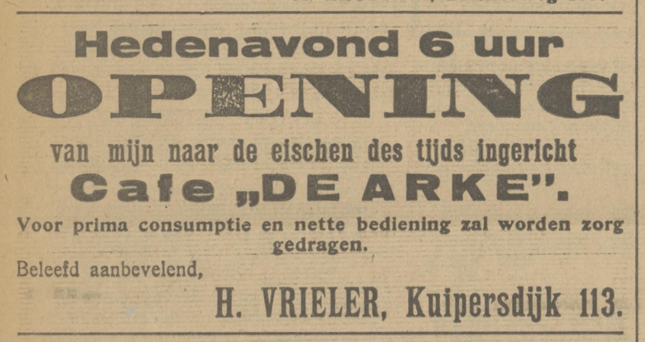 Kuipersdijk 113 cafe De Arke eigenaar H. Vrieler advertentie Tubantia 4-8-1923.jpg
