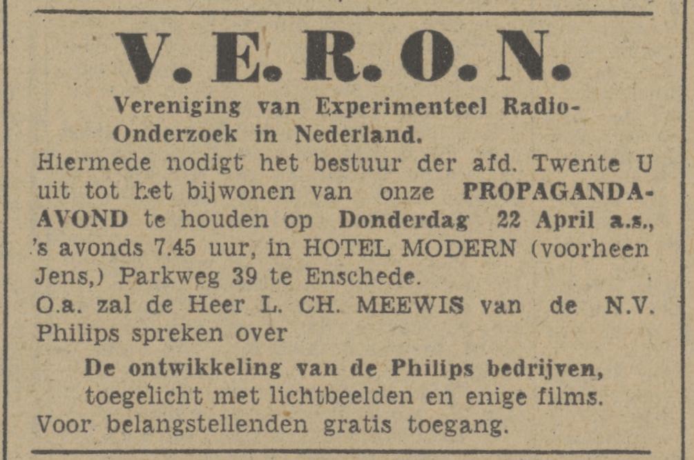 Parkweg 39 Hotel Modern (voorheen Jens) advertentie Tubantia 20-4-1948.jpg
