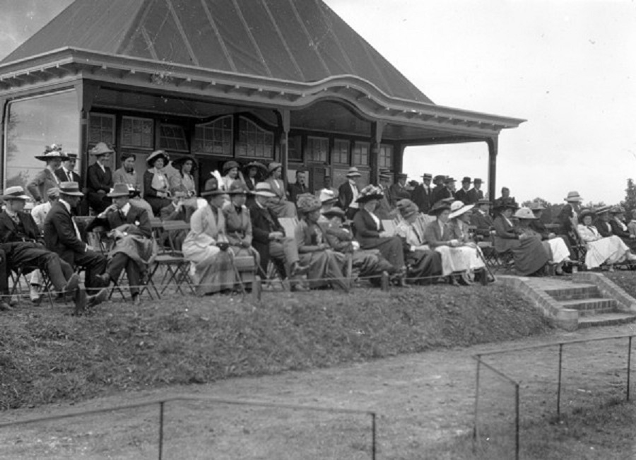 Volkspark 1924 cricketwedstrijd PW, achtergrond ELTC clubgebouw.jpg