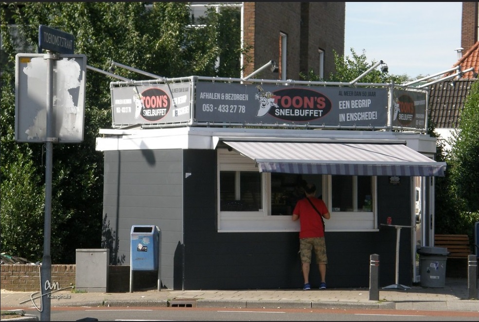 G.J. van Heekstraat 258 hoek Toekomststraat Toon's snelbuffet. zie: https://www.mijn-restaurant.nl/restaura ... nelbuffet/ en https://restaurantguru.com/Toons-Snelbuffet-Enschede