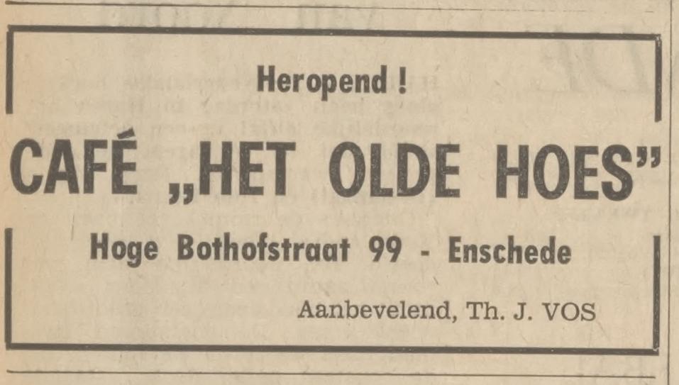 Hoge Bothofstraat 99 cafe Het Olde Hoes advertentie Tubantia 4-4-1966.jpg