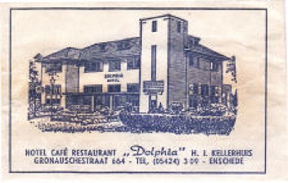 Eerder Gronausestraat 664 Hotel Cafe Restaurant Dolphia H. J. Kellerhuis. zie ook: https://www.enschedeinansichten.nl/coll ... 174-detail