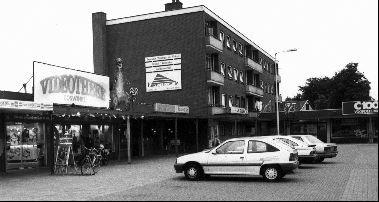 Burgemeester van Veenlaan 112 Winkelcentrum Boswinkel met videotheek Boswinkel, Chinees-Indisch Restaurant Fat-Kee, cafetaria en supermarkt C1000.jpg